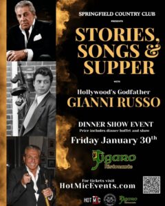 Stories, Songs and Supper… Event Details Date: January 30, 2026 5:30 pm – 10:00 pm The Springfield Country Club & Figaro Ristorante proudly presents a dinner show that pulls back the curtain on one of Hollywood’s most legendary films, UNTOLD STORIES FROM THE GODFATHER, with GIANNI RUSSO (Carlo Rizzi)